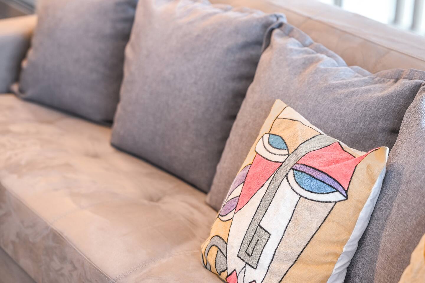 Great location in brand new building with all the essential services and commodities at your doorstep. Ideal for sophisticated business travellers, families and groups looking for a modern, stress-free stay. Just drop your bags and feel at home. We have thought of everything! Includes a secure parking spot, a huge balcony with dining area and a overlooking a large park with playground. 4 gyms, a mall and 3 supermarkets within 5 minutes walk!